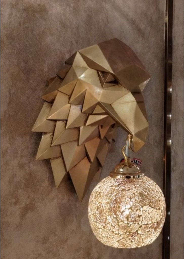 3d eagle face wall light comes with handmade glass hanging in his peak